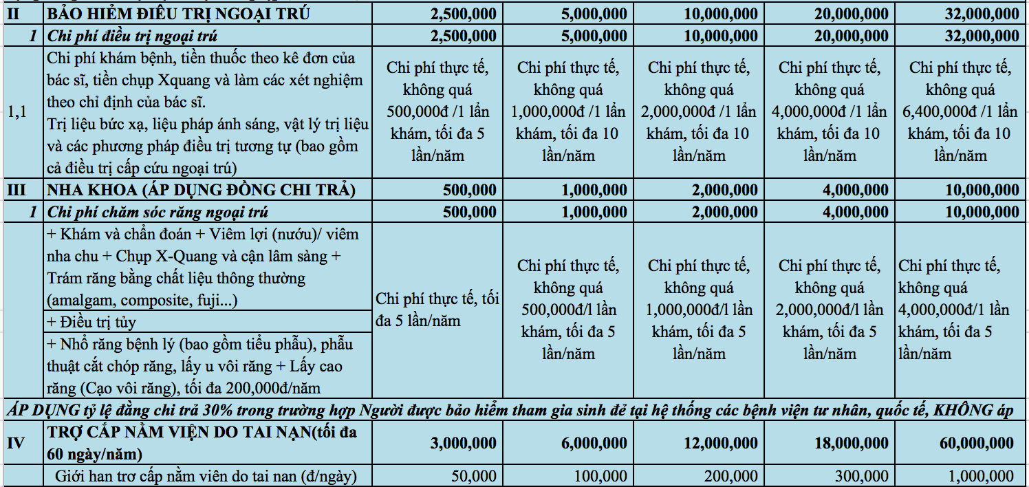 ✔ Quyền lợi Bảo hiểm điều trị ngoại trú lên tới 32 triệu VNĐ/năm.
